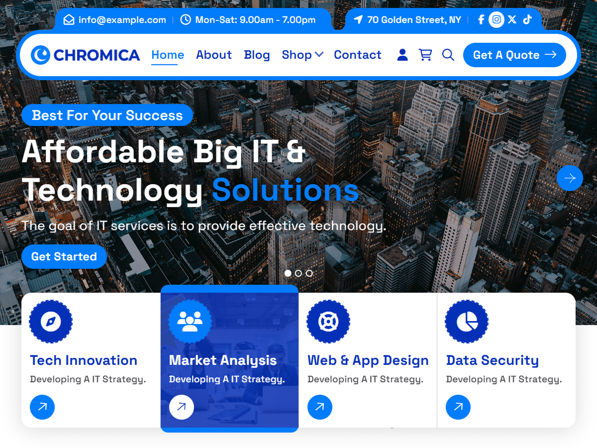 Chromica is a lightweight, stunning, professional and flexible WordPress Theme. Chromica is perfect for Startup, IT Solutions, IT Business, Agencies, Marketing, Consulting and Services Company related to any business websites. Chromica based on in-depth research into IT Solutions, IT Services, IT Business, Consulting & Software, Digital Solution, Technical Engineering, Technology, and Services Company, to deliver all needed layouts and blocks. It will enable you to create almost any type of website with a beautiful & professional design.